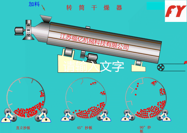 回轉圓筒干燥機的主體是沿軸向裝有若干抄板的圓筒。圓筒略呈傾斜放置,在齒輪機構的驅動下作旋轉運動。