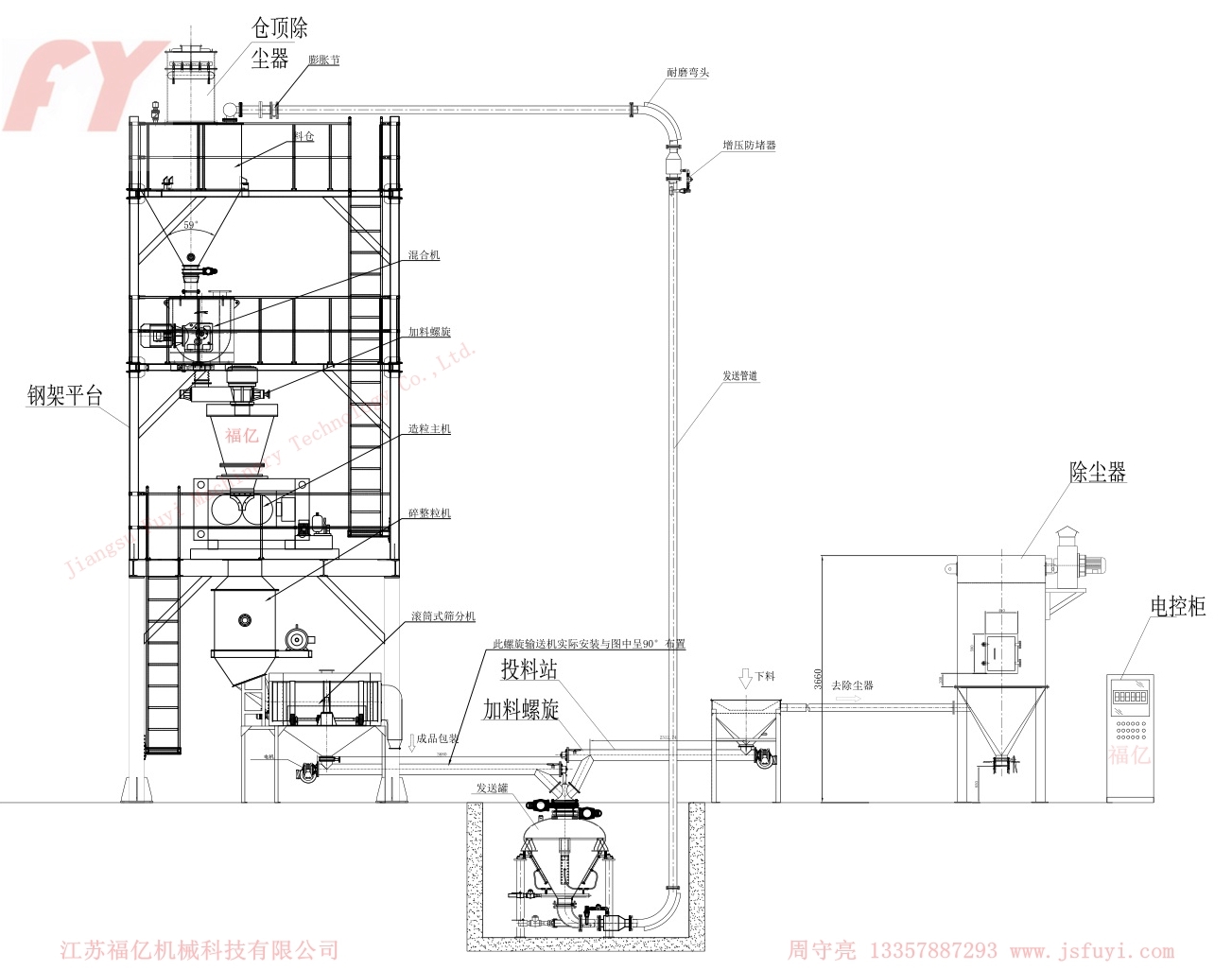以DH850造粒機為核心的顆粒硫酸鉀生產線為例(年產30萬噸大顆粒)